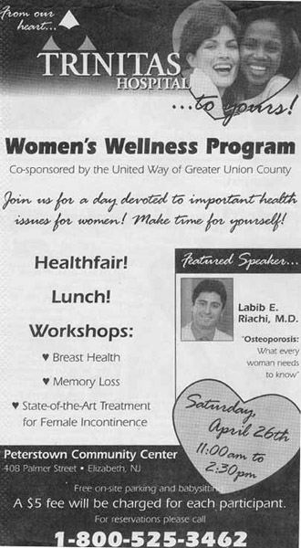 Ivitation from trinitas hospital about Women's wellness program