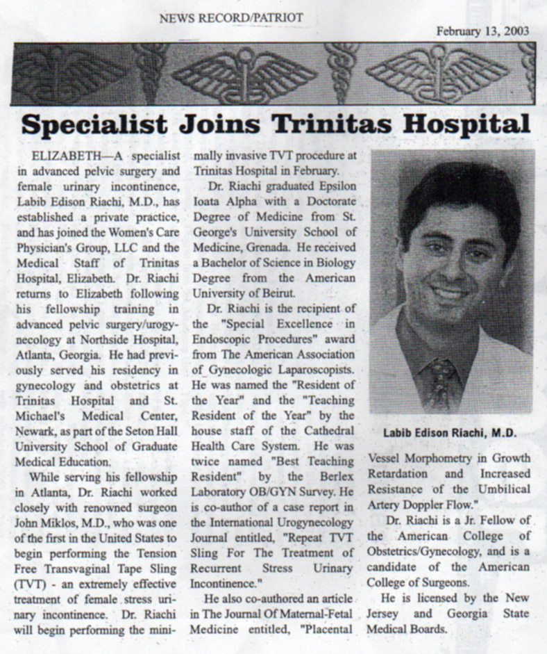 Specialist joins Trinitas Hospital